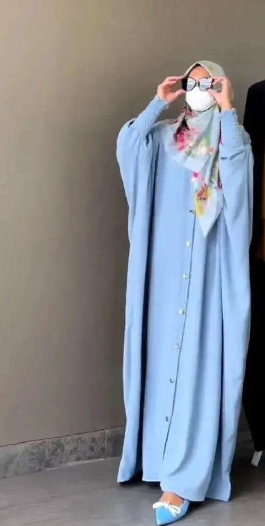 • Material: Georgette• Gender: Women's• Color: Blue• Package Includes: 1 x Classic Abaya• Length: 55 Inches• Width: 23 Inches• Note: There might be an error of 1-3 cm due to manual measurement, and slight color differences may occur as a result of varying lighting and monitor effects.